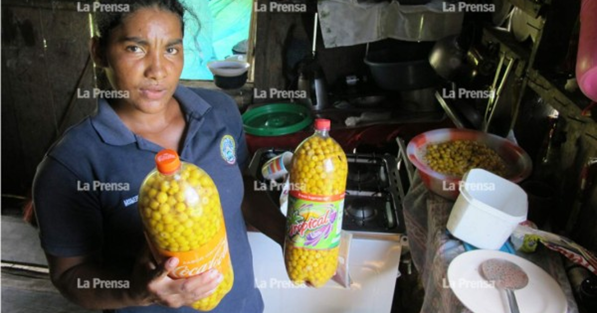 En las chozas de las comunidades más pobres de Puerto Lempira es común encontrar una gran cantidad de todo tipo de recipientes llenos de nances. Algunos tratan de venderlos, pero si no lo logran, el propio nance es su único alimento.