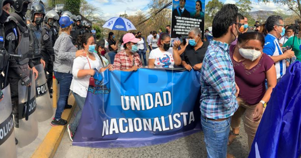 En ese sentido, un grupo de simpatizantes del Partido Nacional y seguidores del ex mandatario se instalaron en las afueras de la Corte Suprema de Justicia (CSJ), en apoyo a Juan Orlando Hernández.
