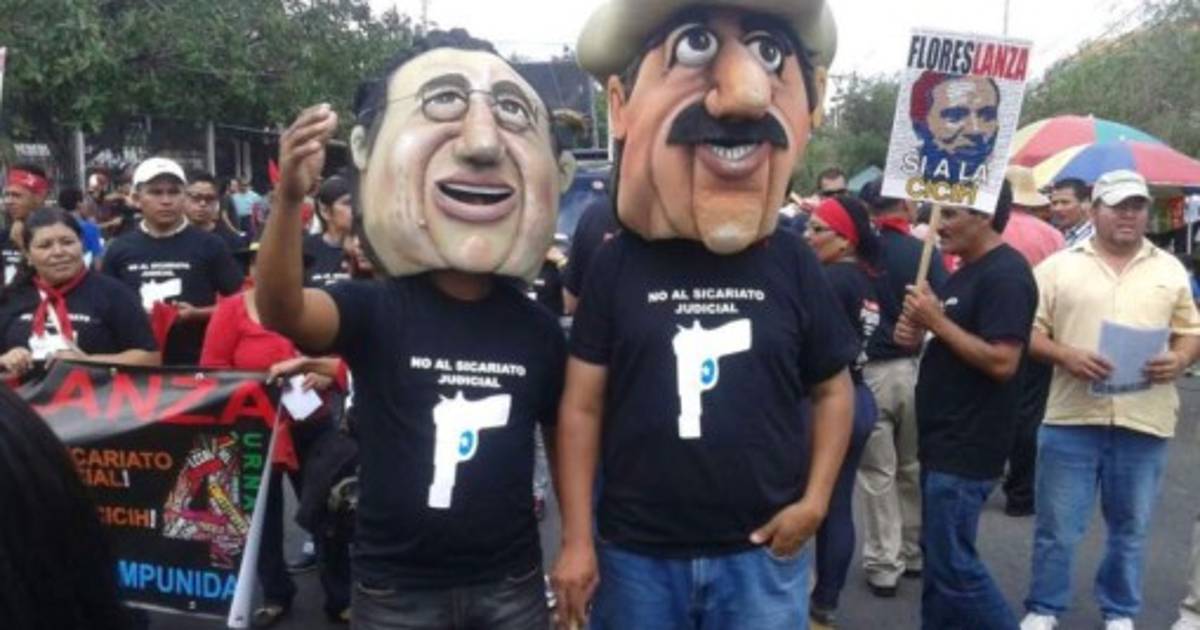 Los miembros del FNRP exhibieron monigotes del expresidente Zelaya y del exministro de la Presidencia Enrique Flores Lanza, prófugo de la justicia hondureña, a quien se le acusa por nueve delitos de malversación de caudales públicos.