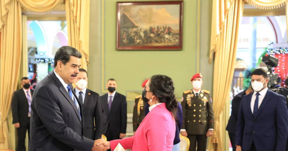 El presidente de Venezuela, Nicolás Maduro, recibió ayer lunes las cartas credenciales de la embajadora de Honduras, Scarleth Romero, lo que oficializa el restablecimiento de las relaciones diplomáticas entre ambas naciones, rotas desde 2019.