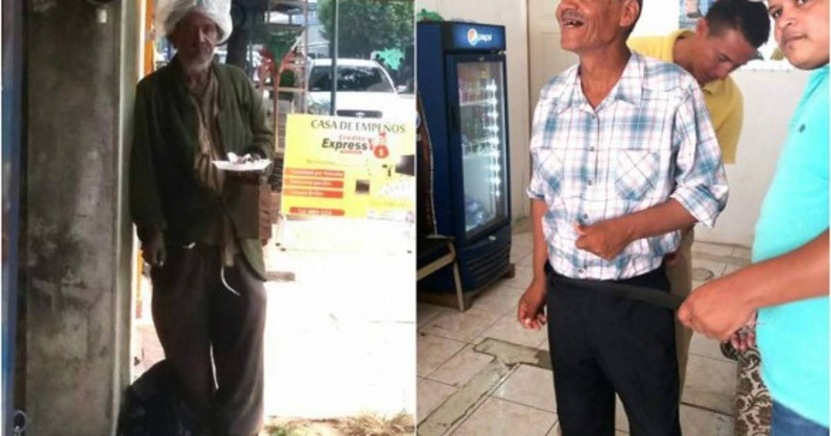 El hombre identificado como 'Don José' andaba con ropas muy sucias y su cabello totalmente descuidado, los jóvenes lo bañaron, le cambiaron su vestimenta por una limpia, zapatos y hasta lo llevaron a una barbería.