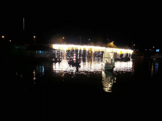 Show de juegos pirotécnicos en el centro de la Laguna de Alvarado fue la sorpresa de la noche.