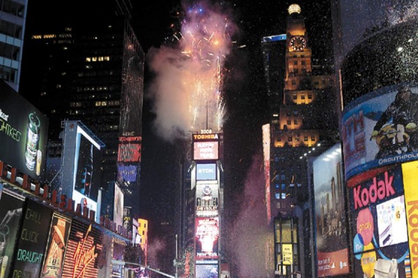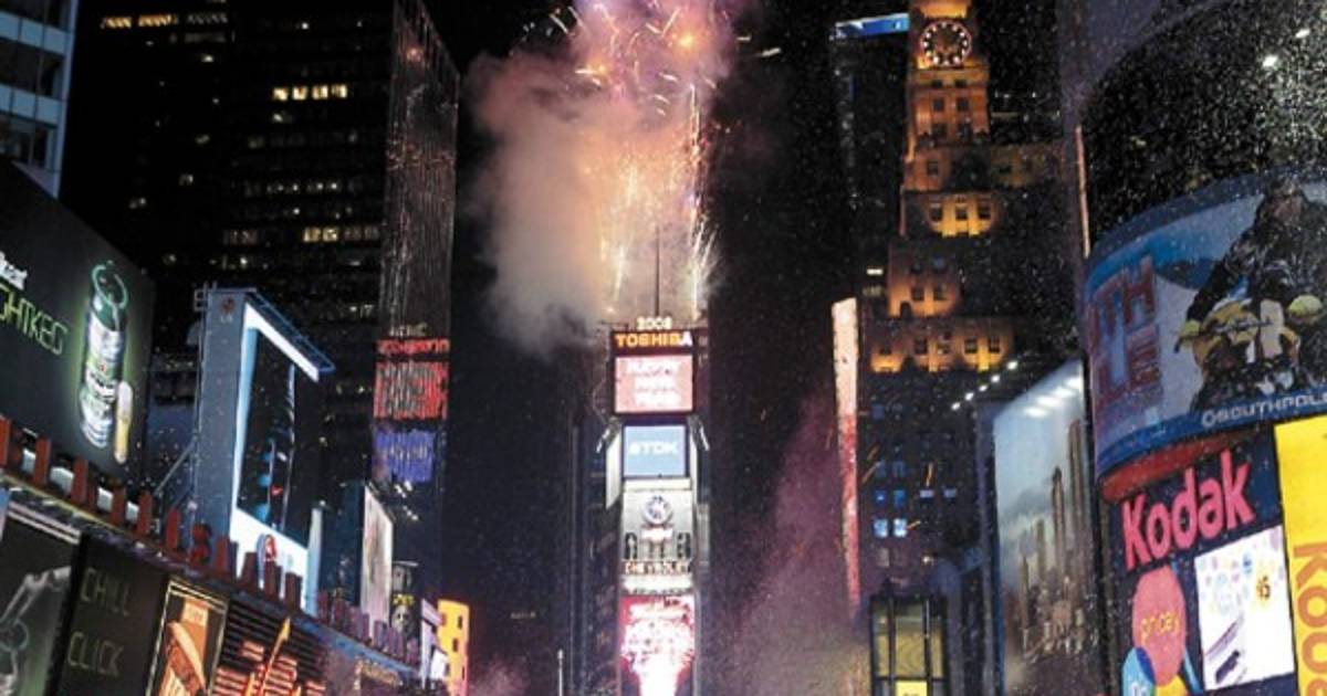 Cientos de miles de personas se congregaron en Times Square para recibir el 2008 con la tradicional bola de luces que bajó a la medianoche en Nueva York, un rito que cumplió un siglo de vida.