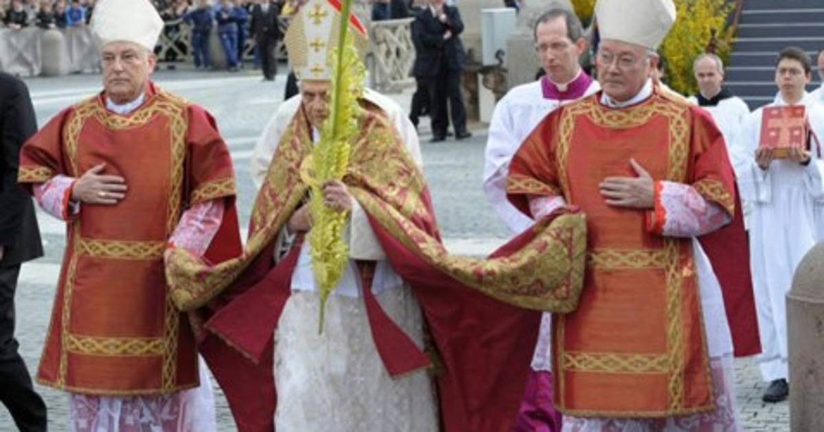 Al comienzo de la celebración, el Papa bendijo las hojas de palma y de olivo con agua bendita y luego avanzó en procesión hasta el altar instalado en la escalinata de la Basílica de San Pedro, ataviado con intrincados ornamentos con brocados en hilos de oro y llevaba en la mano una fronda de palma tejida.