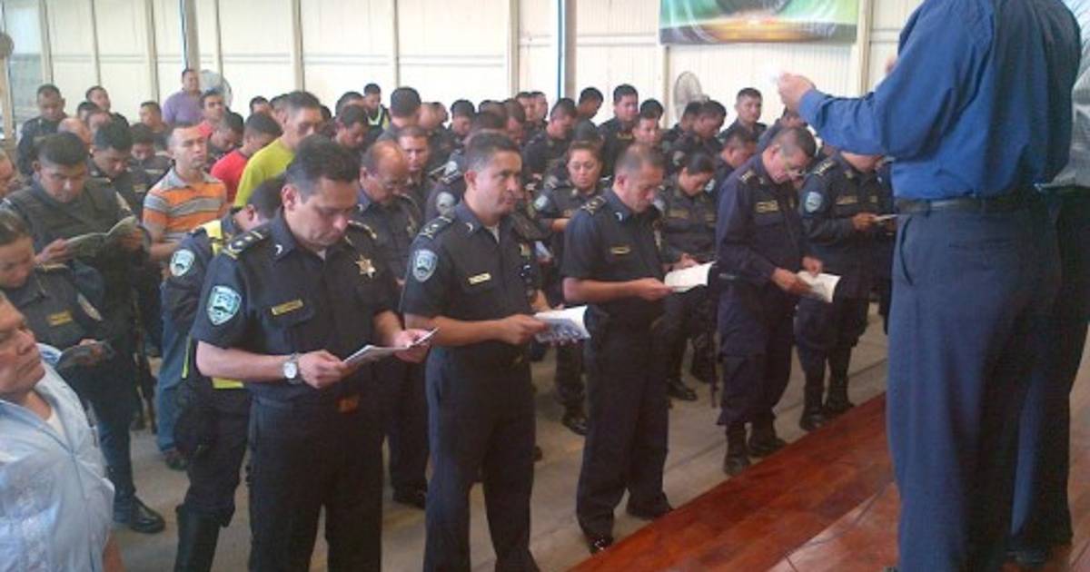 Más de 100 agentes de la Policía Nacional de Honduras participaron este dia en una jornada se oracion para rogar por el cese de la paz y reduccion de la criminalidad en El Progreso y resto de Yoro.