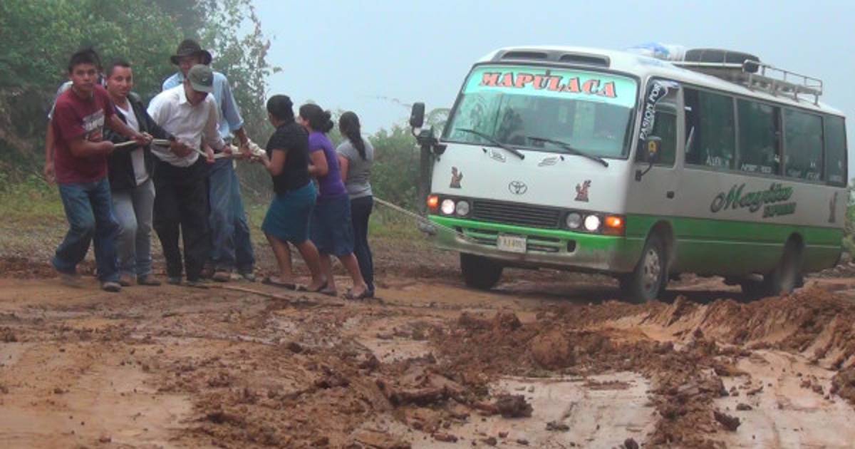 Los usuarios del transporte a diario halan con un lazo las unidades para pasar el barro en varias zonas del corredor sur.