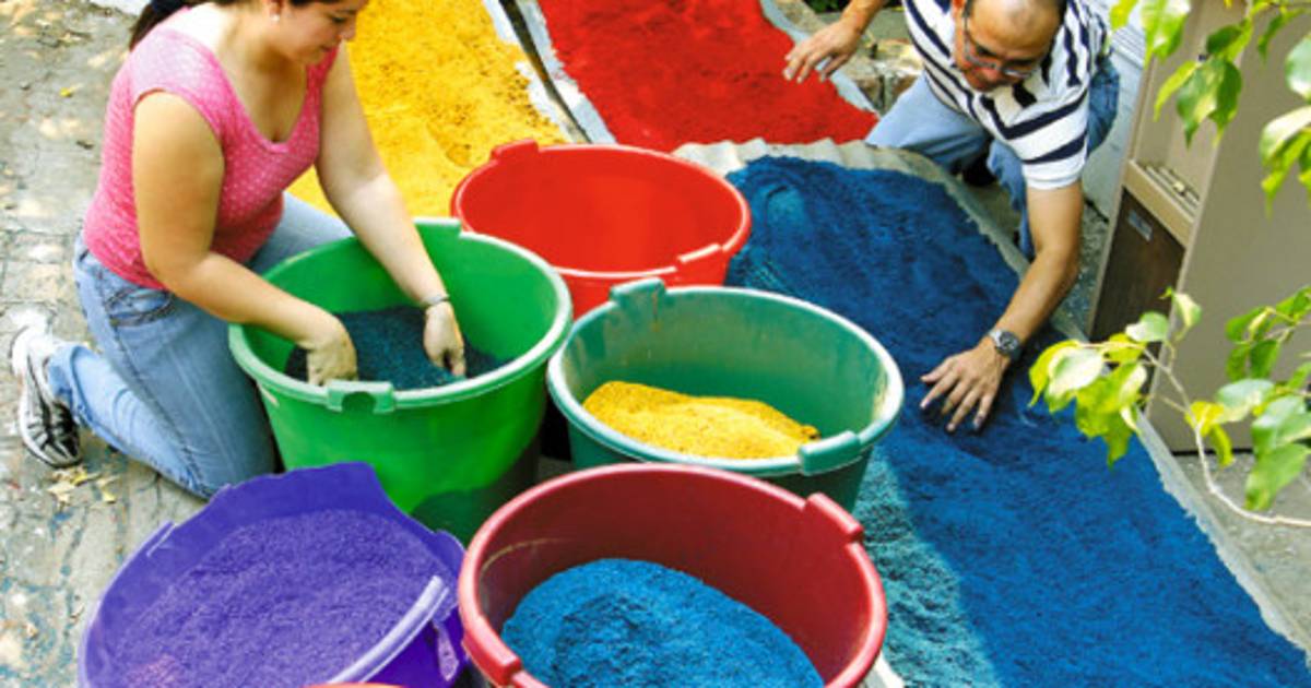 Su inspiración es Jesús y su talento es nato. La devoción de la feligresía católica de esta ciudad es admirada cada año por los mensajes que plasman en alfombras de aserrín, semillas y flores durante Semana Santa.