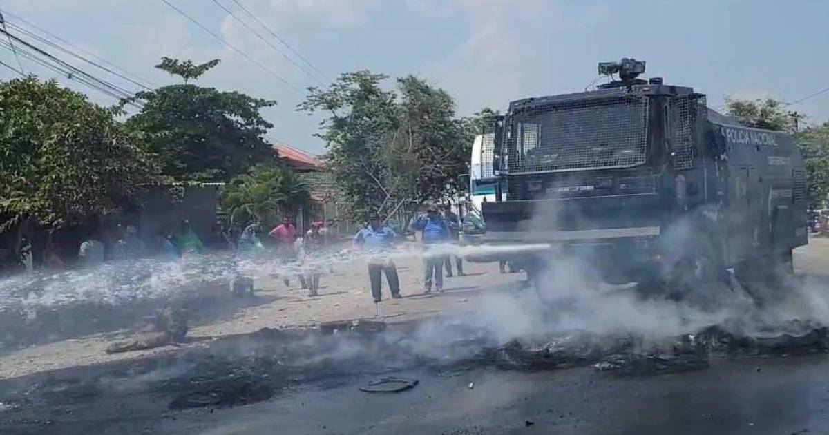 Al lugar llegaron elementos de la Policía Nacional con la tanqueta pero no hubo necesidad de usar la fuerza y tras varias horas de negociar se quitaron las llantas que los pobladores habían encendido.