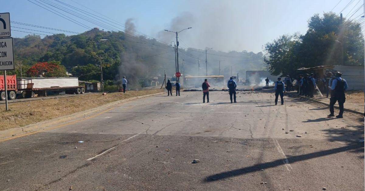 La manifestación se desarrolló en el bulevar principal de Choloma, donde los protestantes colocaron llantas y ramas de árboles para cerrar por completo las dos trochas de la vía, impidiendo la circulación de vehículos en ambos sentidos.
