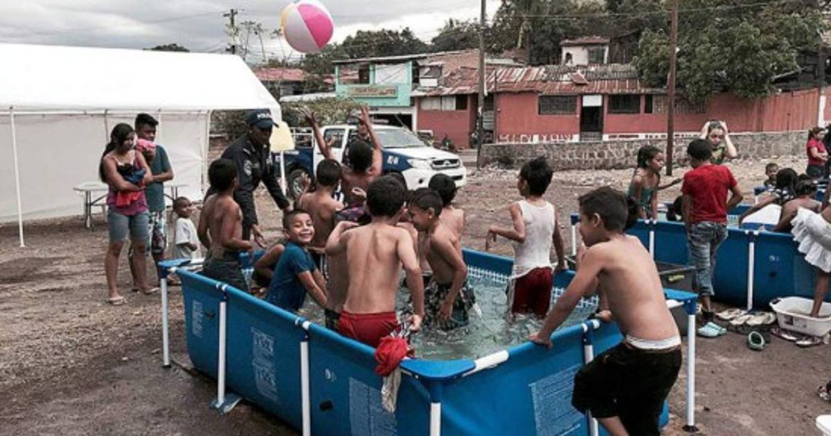 Como parte de una proyección social, la Policía Nacional de Honduras instaló siete pisinas, dos canchas de volibol de arena y una cancha de futbolito en la colonia Campo cielo de la ciudad capital de Honduras.