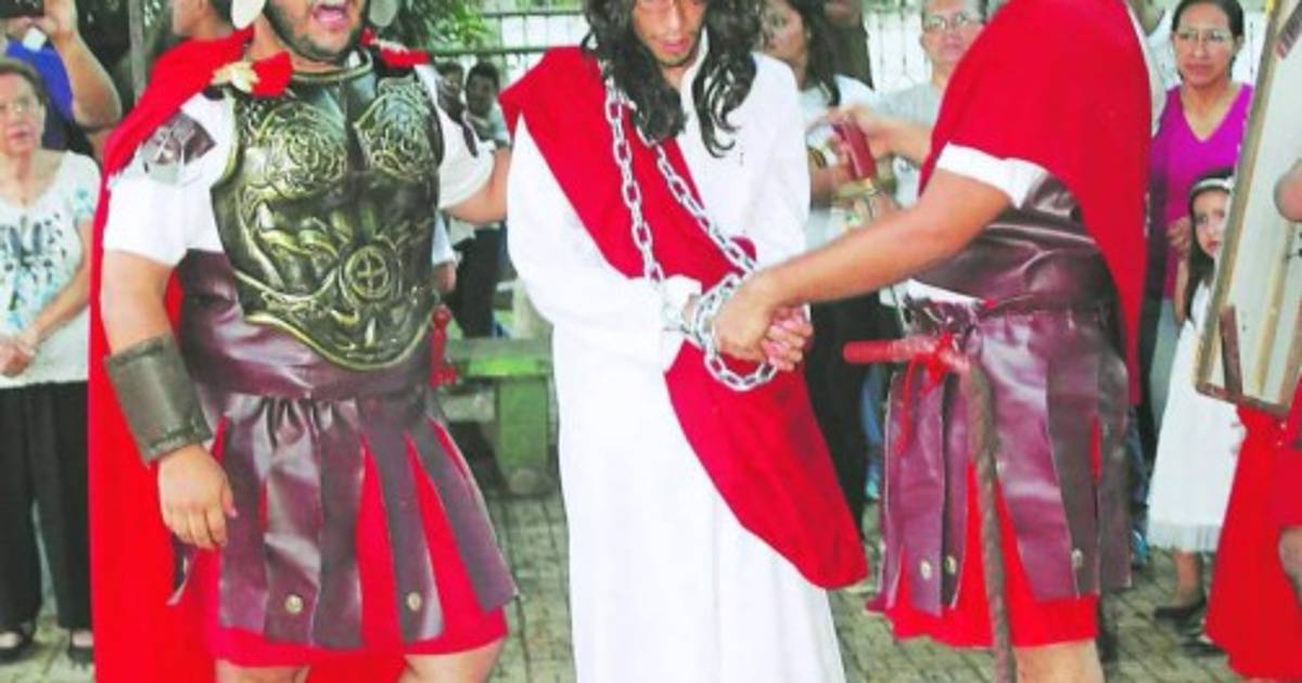 Cada Miércoles Santo un grupo de jóvenes sampedranos personifica la pasión y muerte de Jesús.