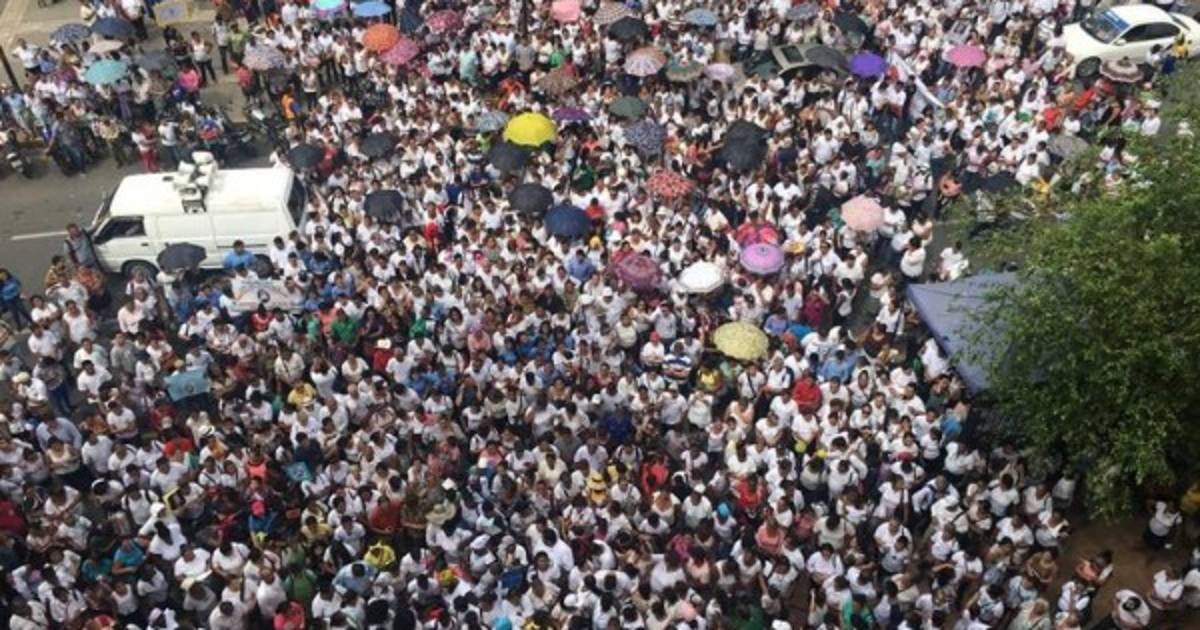 Cientos de católicos en la tercera avenida de San Pedro Sula.
