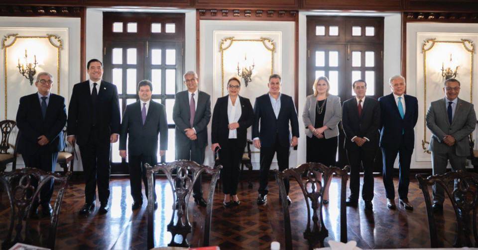 La presidenta de la República, Xiomara Castro, se reunió el pasado viernes para dialogar sobre varios temas con los principales empresarios del sector bancario hondureño, entre ellos, Jacobo Atala y Guillermo Bueso.