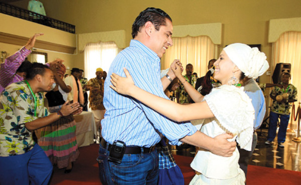 El presidente Porfirio Lobo Sosa, en compañía del ministro de los Pueblos Indígenas y Afro-Hondureños, Luis Green, inauguró este viernes, en Casa Presidencial, las festividades del Mes de la Herencia Africana en Honduras.