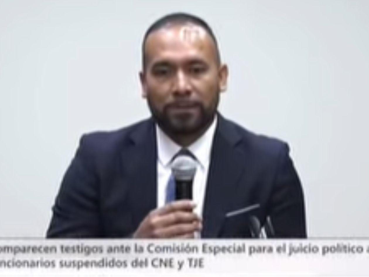 Marco Noé Martínez Pereira fue el primer testigo en comparecer durante la audiencia del juicio político contra Mario Morazán, Lourdes Mejía y Gabriel Gutiérrez, funcionarios del Tribunal de Justicia Electoral (TJE), así como contra Marlon Ochoa, del Consejo Nacional Electoral (CNE).