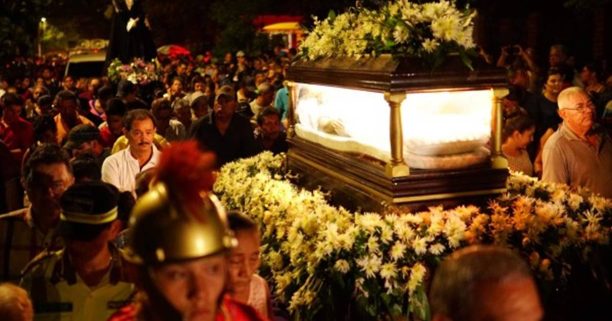 Resguardada por la imagen de la Virgen Dolorosa, que representa a las madres sufridas por las pérdidas de sus hijos, el ataúd de vidrio conteniendo la imagen de Jesús recorrió la ciudad.