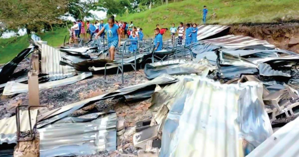 El incendio, cuyas causas se desconocen, consumió paredes, pupitres, mobiliario, libros, entre otros, de un centro educativo que fue construido, según relatos, con el esfuerzo de la comunidad.
