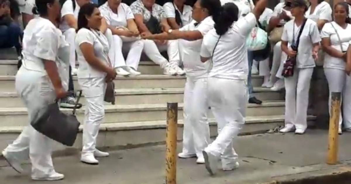 Entre aplausos y gritos de sus compañeras y la admiración de quienes pasaban por allí, la enfermera siguió mostrando sus dotes de bailarina, pero esta vez con la canción 'Te ves buena' de El General.