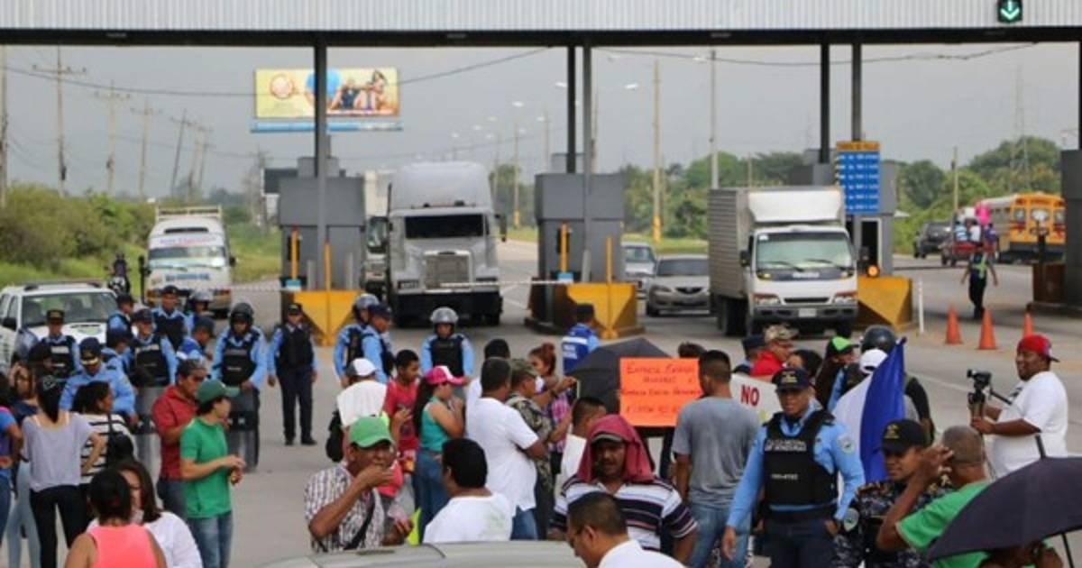 Un grupo de personas realizó un plantón este miércoles frente a las casetas de peaje en San Manuel, Cortés, zona norte de Honduras, en protesta por el cobro del peaje.