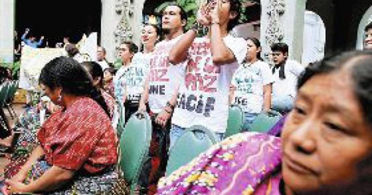 Un grupo de jóvenes, entre los que se encontraban familias de víctimas de la guerra civil que azotó al país durante 36 años, interrumpieron el discurso del presidente Óscar Berger cuando éste se disponía a iniciar su intervención.