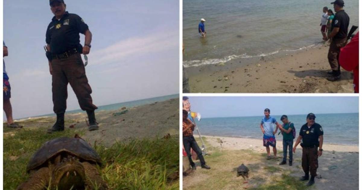El animal fue sacado por una persona y entregado a elementos de la Policía Municipal, quienes se encontraban en las playas en ese momento.