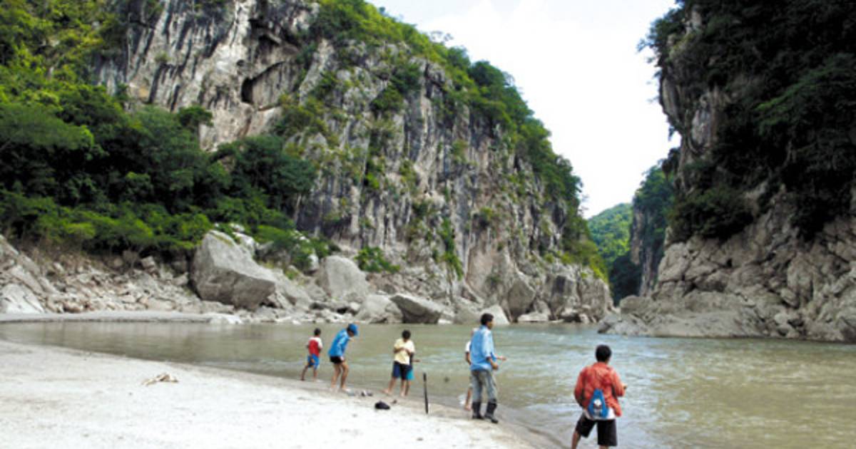 Dos montañas encierran el río de donde los pequeños peces brotan y son esperados por los lugareños. Para llegar al paradisiaco lugar se atraviesa un pequeño cerro de piedra caliza, rodeado de verdes árboles.