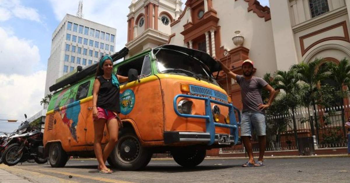 Una enamorada pareja de argentinos salió de su país hace dos años en un Volkswagen del año 1984 con la mira de llegar a Alaska y ya recorrieron la mitad del camino. Ahora están en San Pedro Sula.