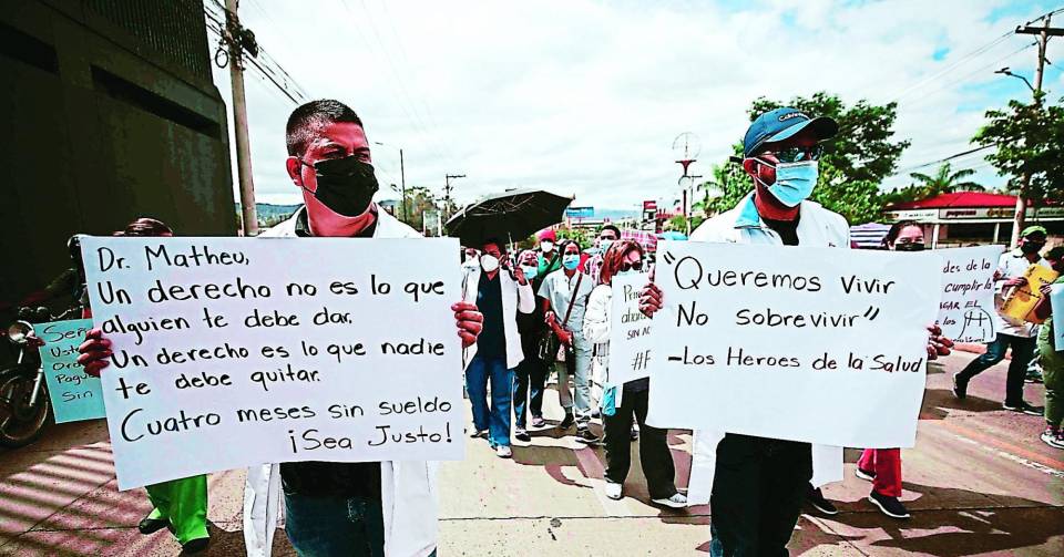 La lista de exigencias es encabezada por los pagos salariales que no se han efectuado en los últimos cinco meses y, en casos extremos, hasta siete meses hay de retraso, como lo ha denunciado el personal del Hospital de Roatán, Islas de la Bahía.