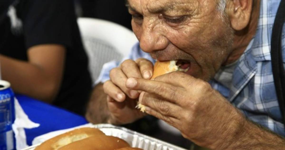 Un señor de 72 años es 'El comelón de Teletón' en San Pedro Sula al comerse ocho perros calientes en 15 minutos.