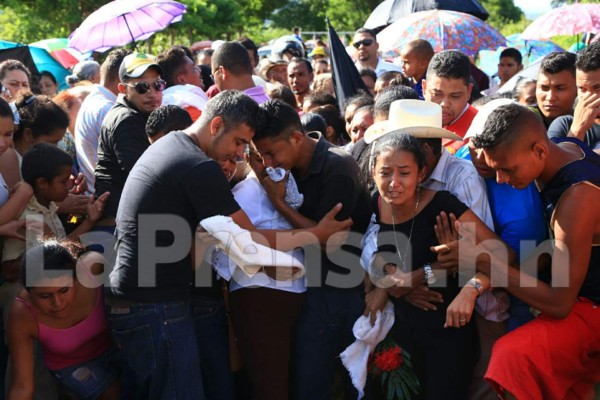 Entre el llanto y la conmoción de centenares de pobladores de Las Lomitas, Yoro, fueron sepultados los cuerpos de tres de los cinco miembros de una familia que perecieron en el accidente ocurrido la mañana de ayer viernes en el departamento de Yoro.