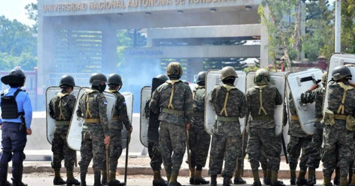 Durante un enfrentamiento contra protestantes que estaban encapuchados, miembros de la Policía Militar ingresaron ayer a las instalaciones de la Universidad Nacional Autónoma de Honduras (Unah), incidente que dejó como resultado a seis heridos, cuatro estudiantes y dos elementos de seguridad.