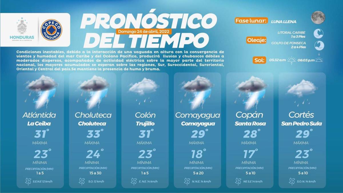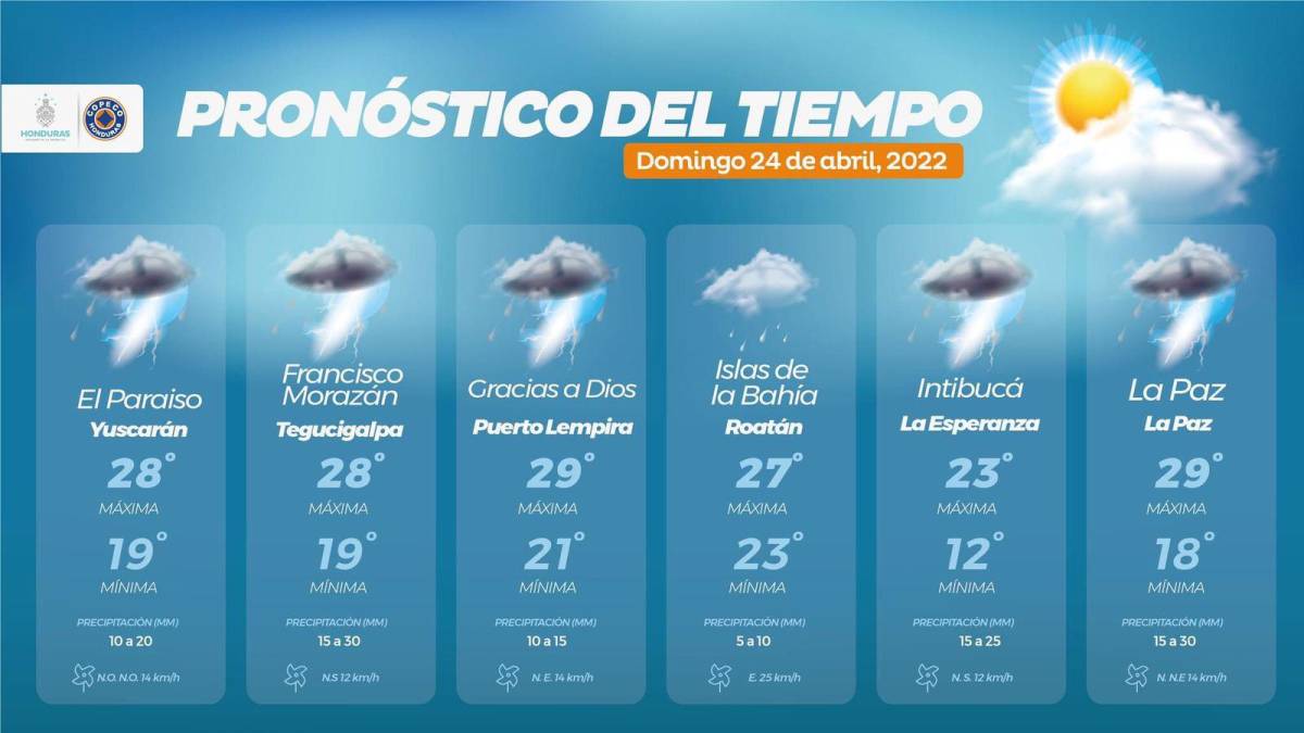 La Comisión Permanente de Contingencias (Copeco), a través del Centro de Estudios Atmosféricos, Oceanográficos y Sísmicos (Cenaos), informó este domingo que continuarán las condiciones inestables del clima en la mayoría de regiones de Honduras.