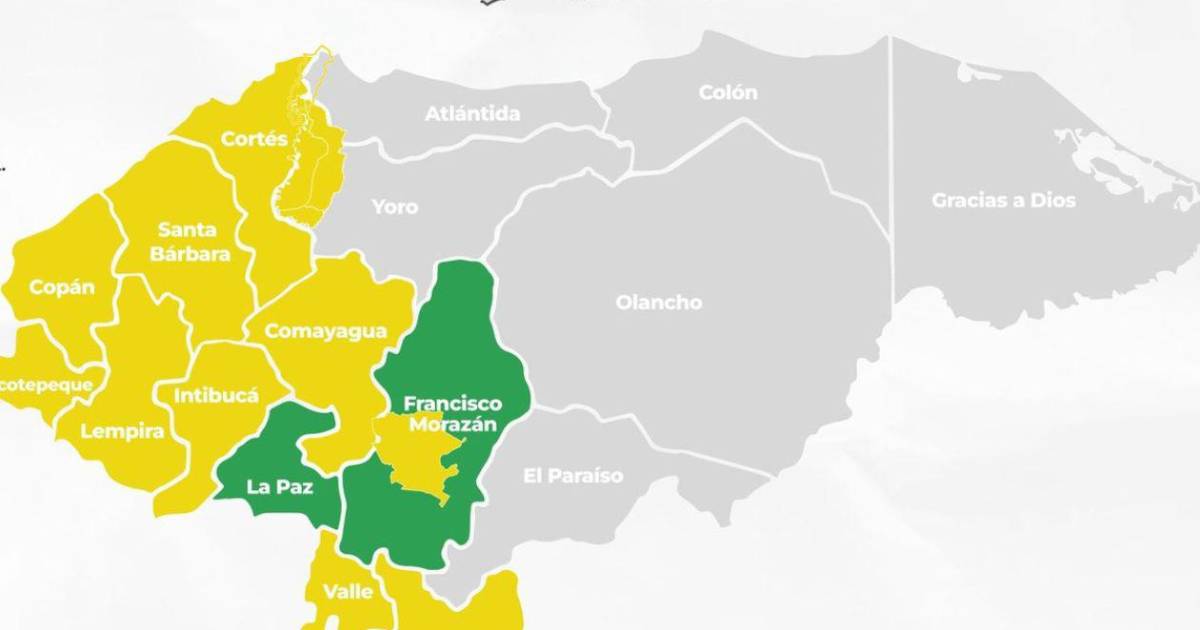 Además, los departamentos de Santa Bárbara, Ocotepeque, Copán, Lempira, Cortés, Comayagua, Intibucá, Valle, Choluteca y el Distrito Central, Francisco Morazán.