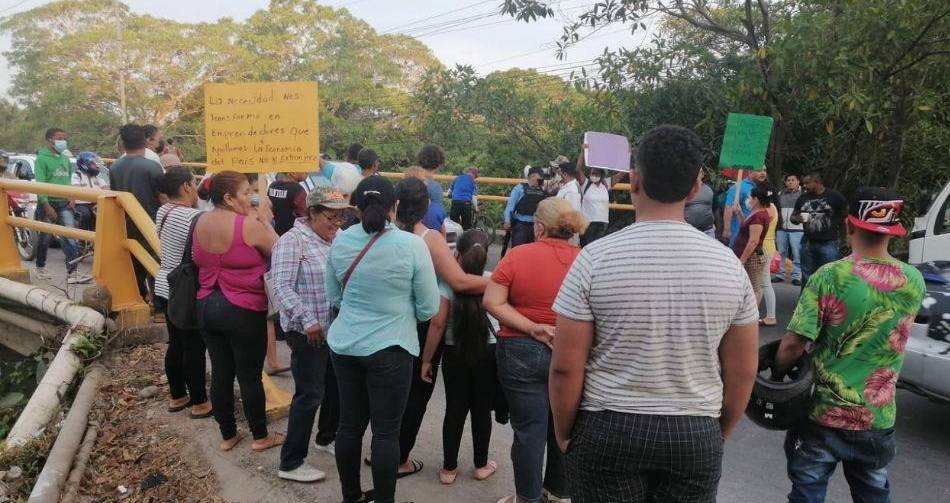 Un grupo de vendedores estacionarios en las aceras del centro de La Ceiba, se tomaron esta mañana el puente Danto en la carretera CA-13 en protesta por el desalojo de varios de sus compañeros.