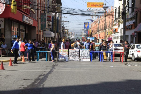 El despeje de calles y avenidas en el centro de San Pedro Sula realizado por la Policía Municipal la madrugada de ayer generó que horas más tarde un grupo de vendedores protestara en la tercera avenida.
