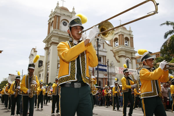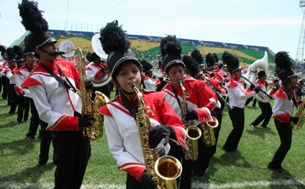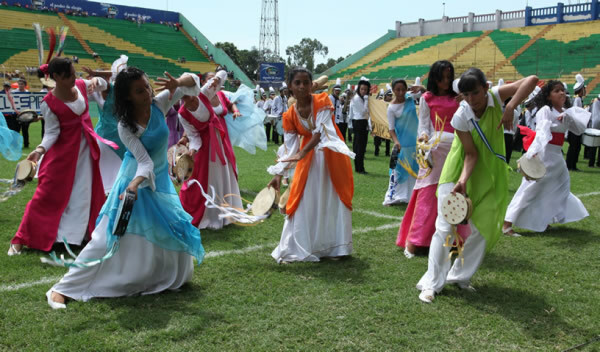 Unos 19 institutos de San Pedro Sula mostraron sus mejores galas a pensar del incidente protagonizado entre la Policía Nacional y los seguidores del ex presidente Manuel Zelaya en el Parque Central.