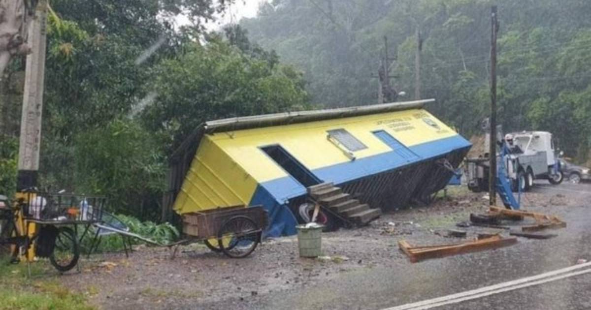 Una estación policial cedió este lunes en el sector de Pito Solo, Santa Bárbara, cuando era removida por una grúa, a consecuencia de las tormentas que caen sobre la región.