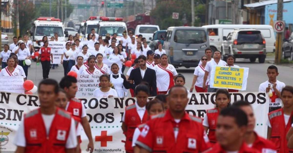Más de 800 voluntarios de Cruz Roja Hondureña conmemoraron el Día internacional de la institución con una marcha sobre la primera calle de San Pedro Sula, al norte de Honduras.