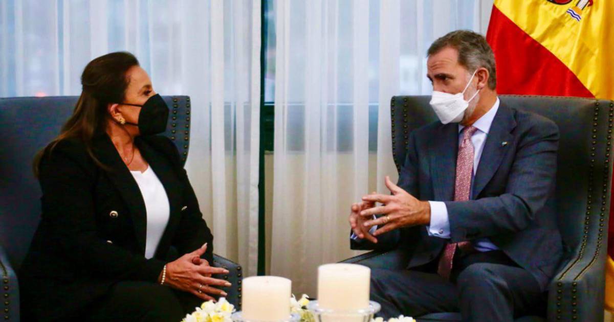 “Un honor reunirme y conversar con Su Majestad el Rey Felipe VI de España, sobre la cooperación y el fortalecimiento de la relación entre nuestros países. Desde ya estamos identificando oportunidades para todas y todos los hondureños”, escribió Xiomara Castro en Twitter, adjuntando dos fotografías del encuentro.