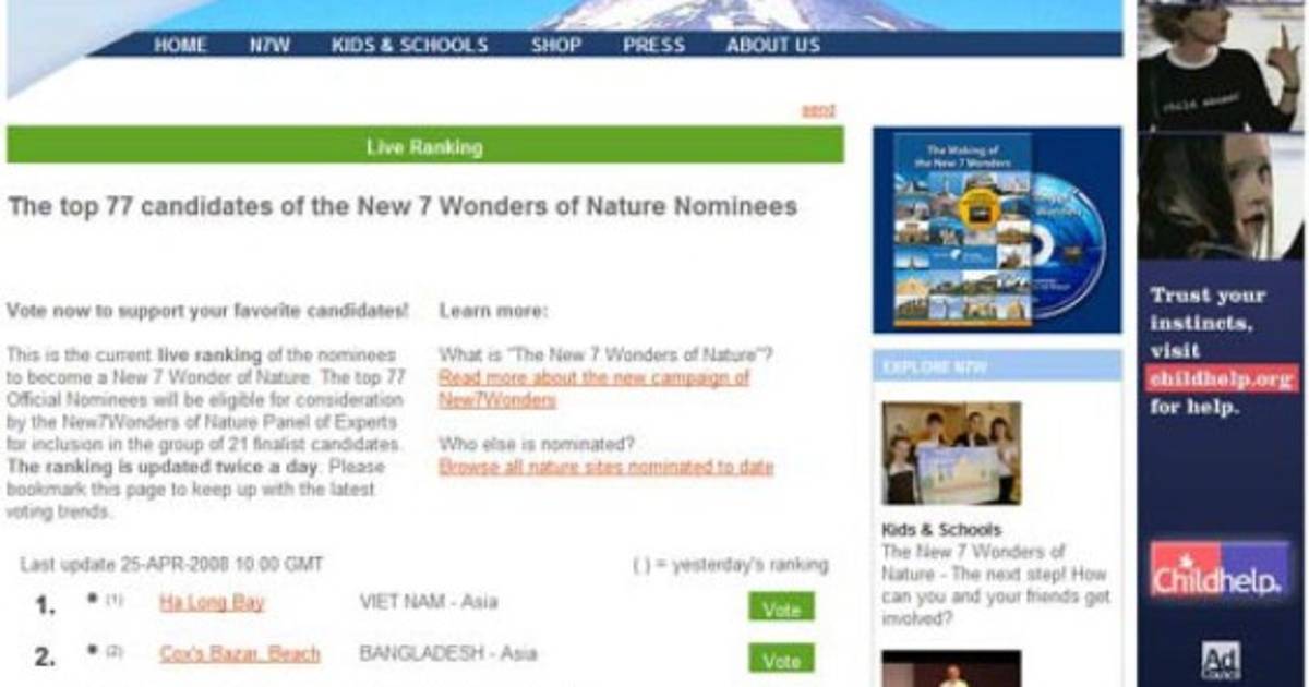 Pase esta dirección a todos sus conocidos http://www.new7wonders.com/nature/en/liveranking/.