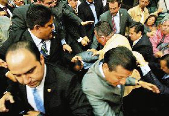Diputados izquierdistas y oficialistas se disputaron a golpes la tribuna de la Cámara de Diputados, donde el próximo 1 de diciembre el presidente electo, Felipe Calderón, tiene previsto asumir el poder.