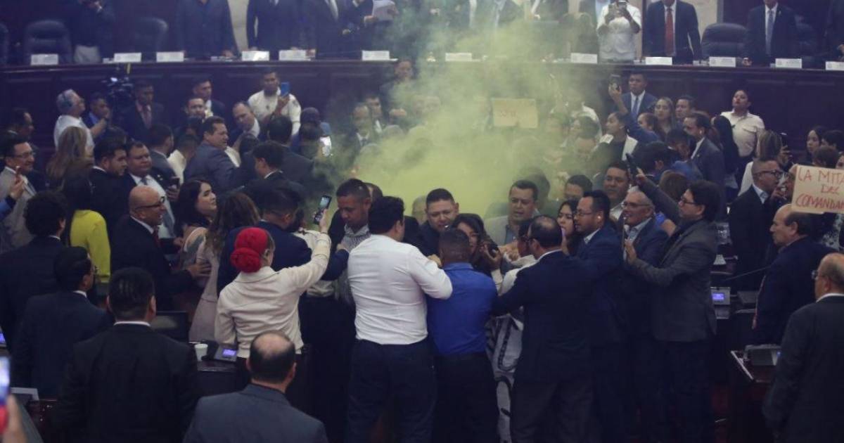 Los incidentes se produjeron durante la sesión en la que se debatía el inicio de un juicio político contra el fiscal general Johel Zelaya, proceso que finalmente fue aprobado con 93 votos a favor, pese a las alteraciones dentro del hemiciclo.