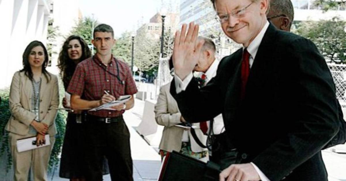 Vistiendo un traje gris oscuro y una corbata roja, el ex representante estadounidense de Comercio, Ustr, llegó al banco poco antes de las 12.20 GMT.
