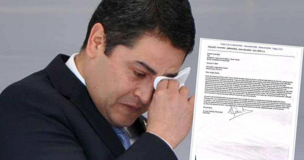 El expresidente de Honduras Juan Orlando Hernández asegura que no tiene dinero. “Los ahorros de mi vida me los congelaron”