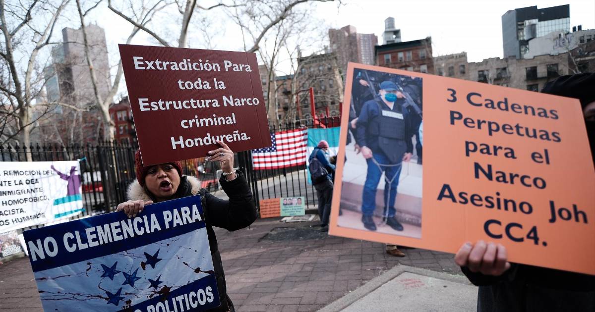Hondureños protestan contra JOH afuera de la Corte en NY