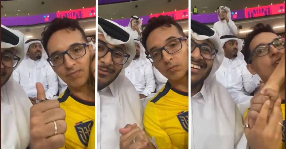 Después de esto, el aficionado ecuatoriano se molestó y empezó a realizar gestos con la mano, como un supuesto soborno tras el gol invalidado y el aficionado qatarí enfureció y le gritó en varias ocasiones: “Shut Up (Cállate)”.