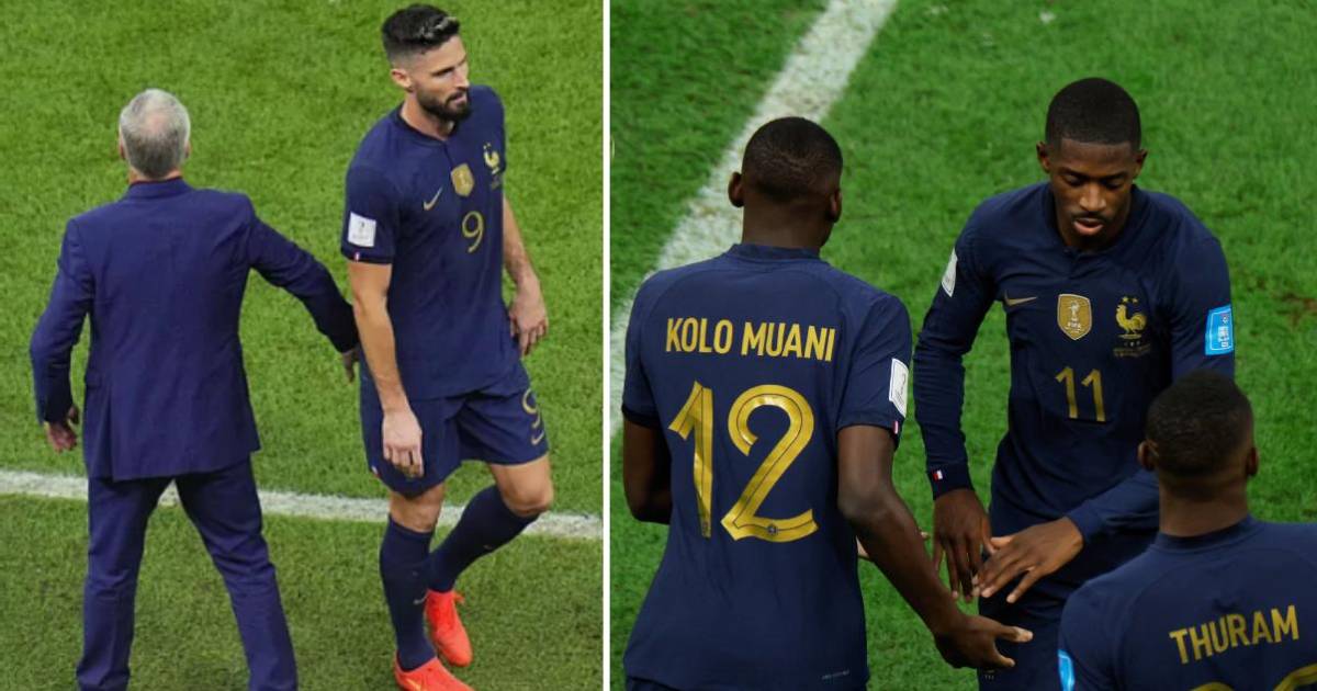 Argentina ya lo ganaba 2-0 y Didier Deschamps decidió reemplazar a dos piezas para cambiar el funcionamiento de los Blues en el terreno de juego, salieron Dembélé y Giroud.