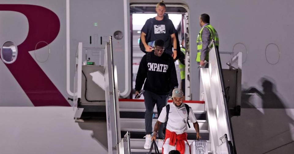 Jugadores de la Selección de Estados Unidos son los primeros de los 32 equipos clasificados para el Mundial 2022, en aterrizar en el aeropuerto internacional Hamad de Doha, a diez días del inicio del evento.