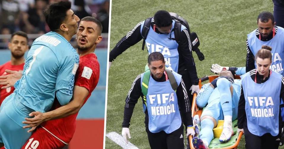 Beyranvand tuvo que marcharse del terreno de juego en camilla y asistido por el cuerpo médico. En su lugar entró Hossein Hosseini.