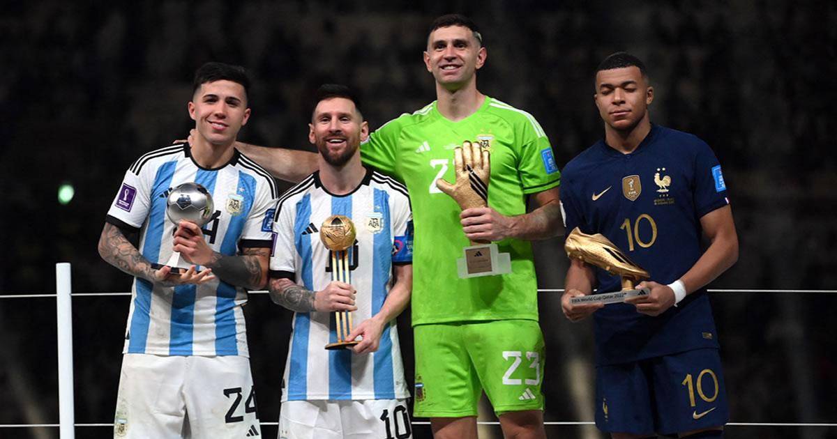 Argentina obtuvo otras dos menciones individuales: para Enzo Fernández, clave en el esquema de Lionel Scaloni en las eliminatorias, fue el de mejor joven; para Emiliano ‘Dibu’ Martínez, parapenaltis en cuartos y en la final, el del mejor portero.